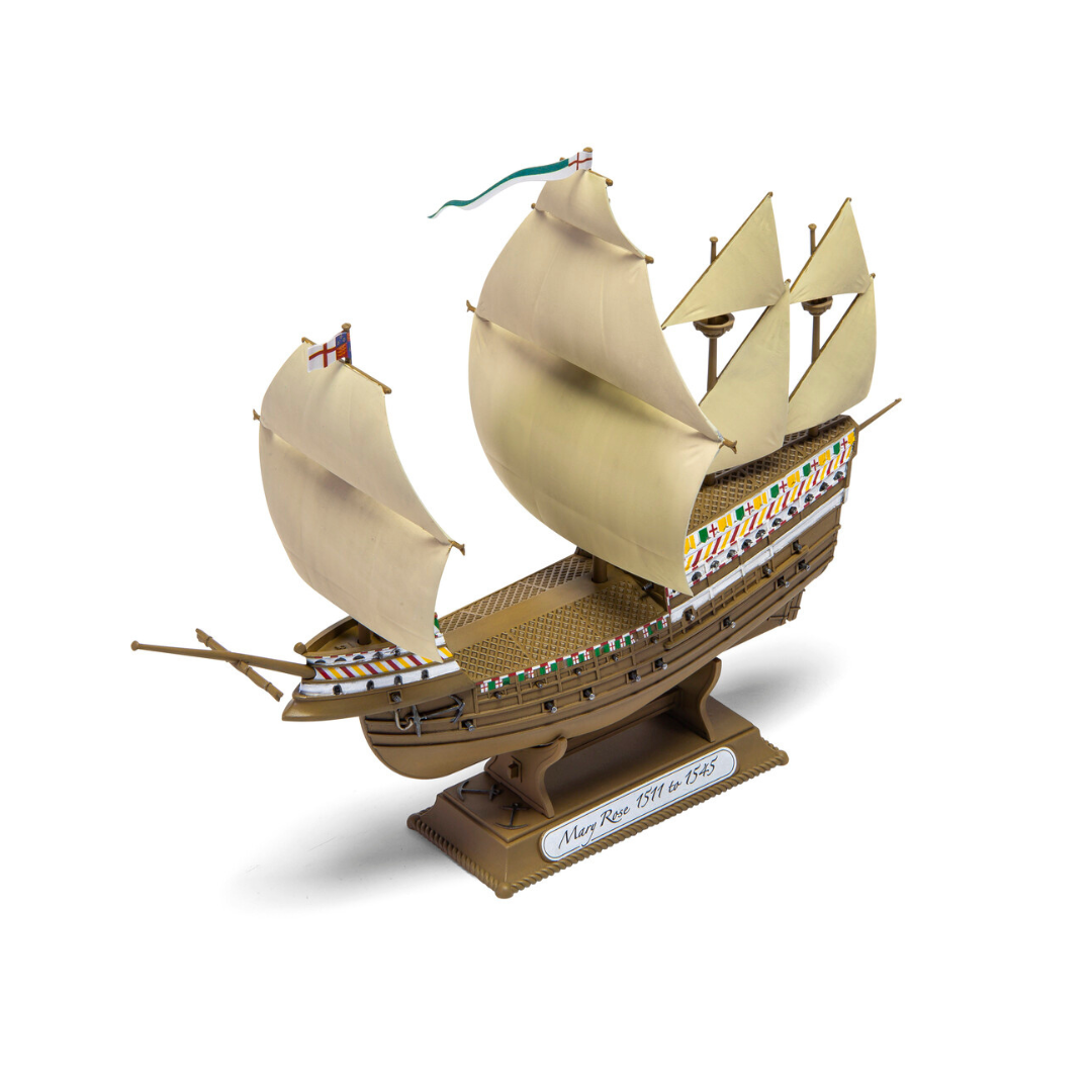 The Mary Rose was a warship used by the English Navy during the Tudor times under the rule of King Henry VIII. The ship served in wars spanning 33 years until it sank in the Solent in 1545. This scale model kit is suitable for all abilities.